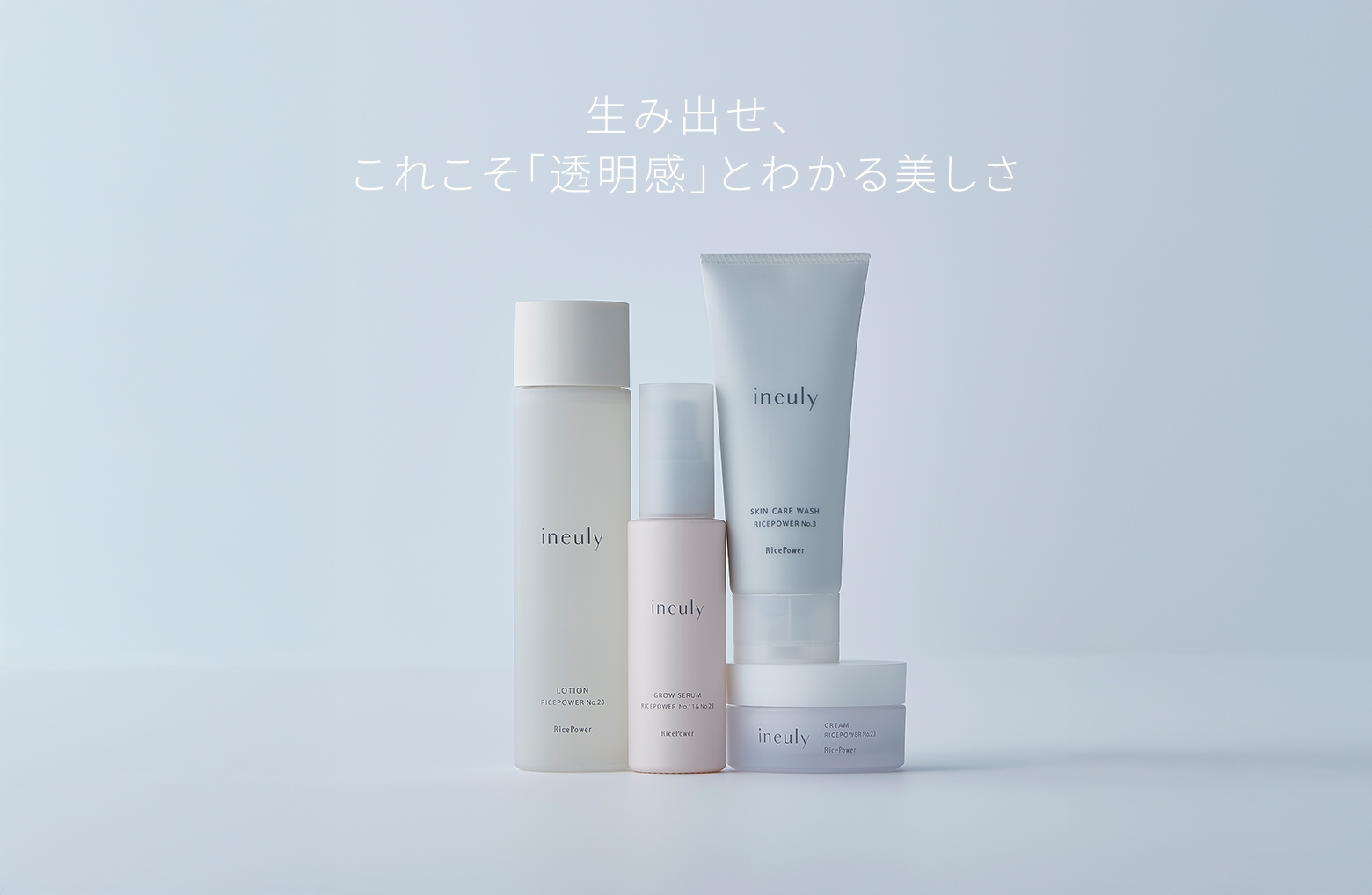 イニューリィ®は、勇心酒造が独自の「日本型バイオ®」により開発したライスパワー®エキスを厳選して配合。発想も、アプローチも、新しく、女性が求める特別な透明感への扉を開きます。