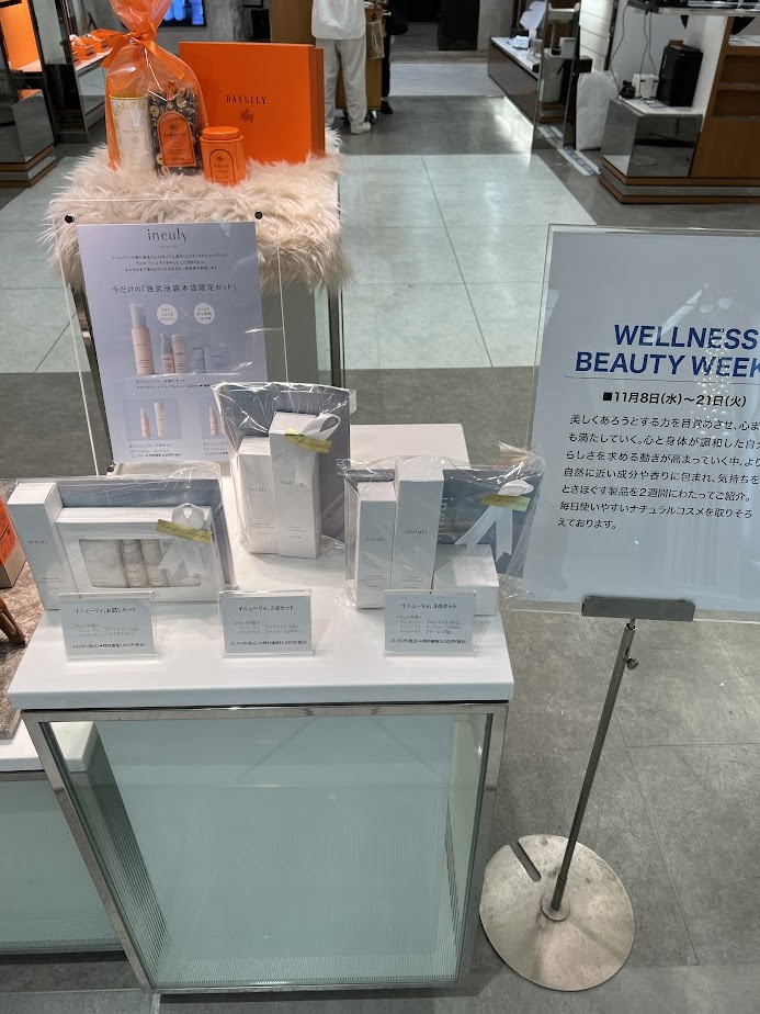 2023年11月8日(水)から11月21(火)の2週間、西武池袋本店2階(中央A6)ナチュラルコスメイベントスペースにて開催されますスペシャルセレクトイベント「ウェルネスビューティウィーク」に参加致します。イベント期間だけの特別セットや各種サンプルをご用意しておりますので是非お越しくださいませ。(数に限りがございます)